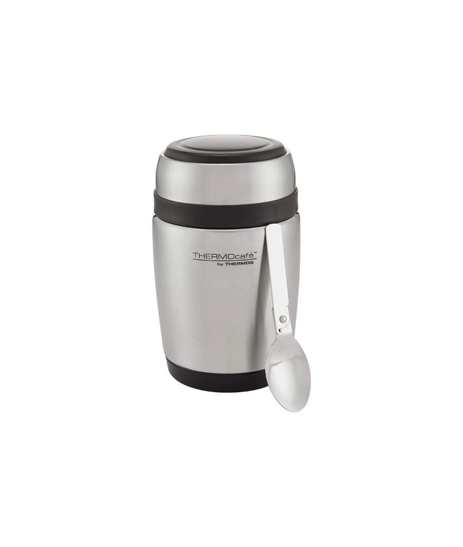 Thermos Curved Food Flask with Spoon, Stainless Steel, 400 ml
