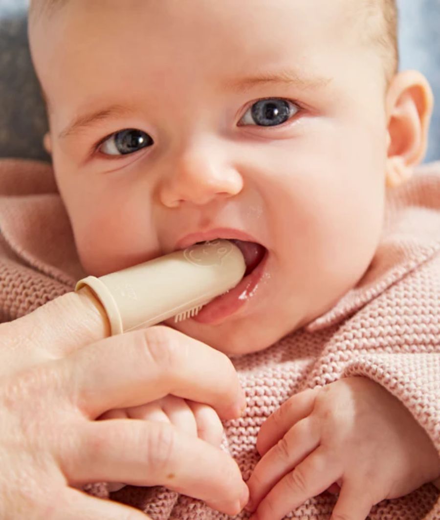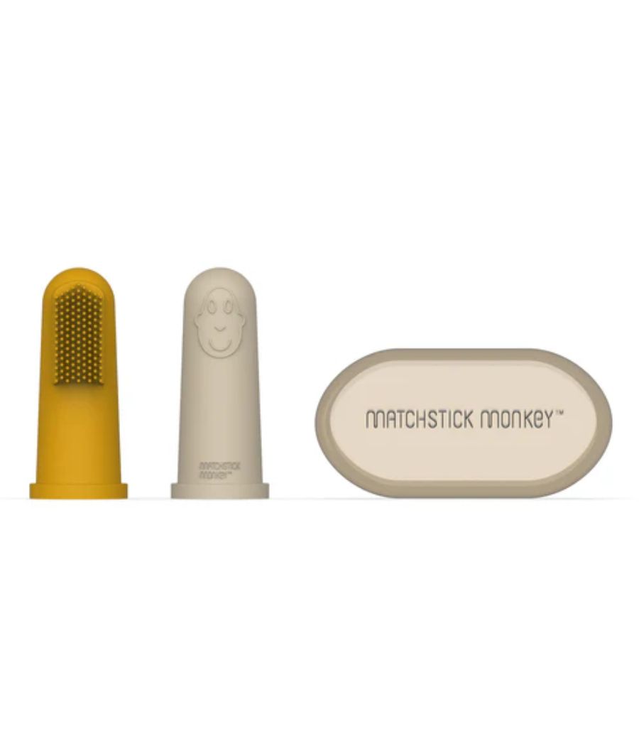 Yellow & Beige Finger Toothbrush with carry case 3- 12 months