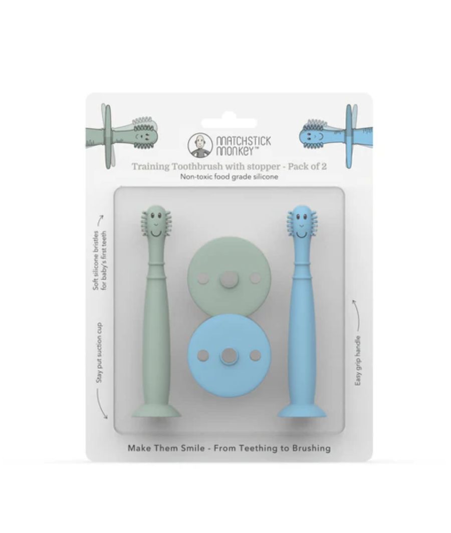 Mint Green and Light Blue Training Toothbrush with Stopper 3 months