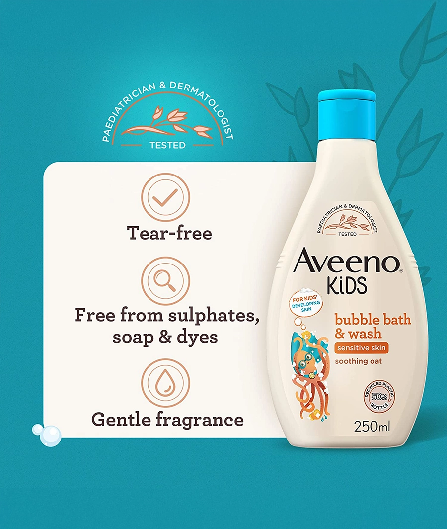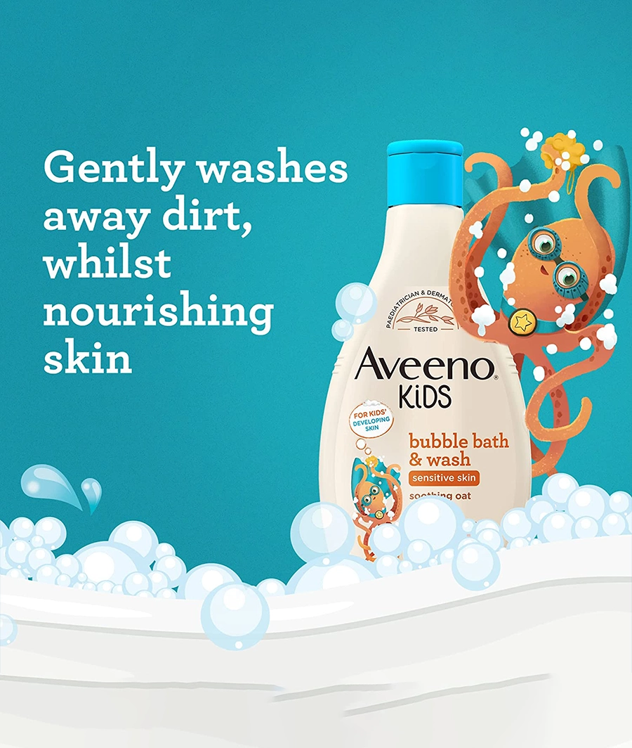 Aveeno Baby Kids Bubble Bath & Wash 250ml – Enriched with Soothing Oat Extract