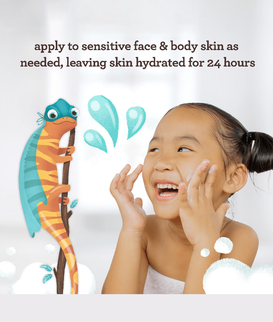 Moisturizes and nourishes your child’s developing, sensitive skin. This fast-absorbing face and body gel cream for kids is formulated with prebiotic oat and is clinically proven to hydrate for 24 hours.