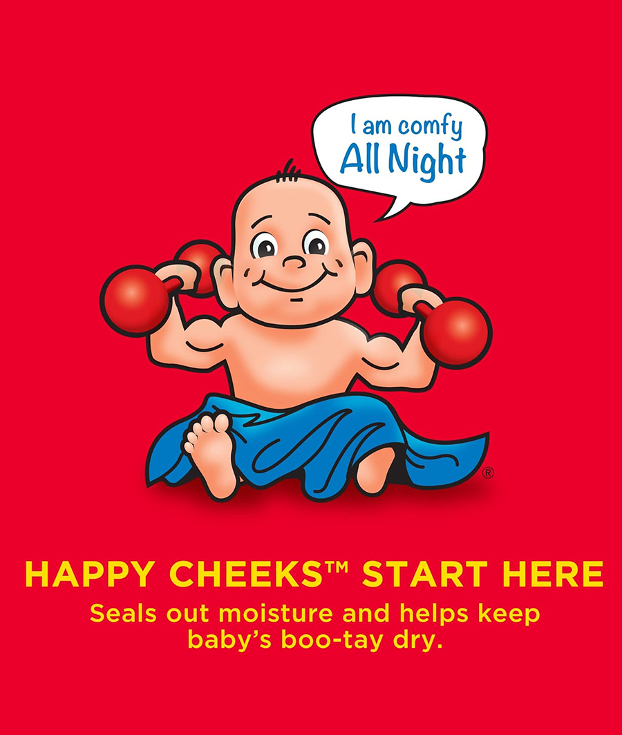 - Seals out moisture for instant protection that lasts through the night and helps keep baby’s boo-tay dry
