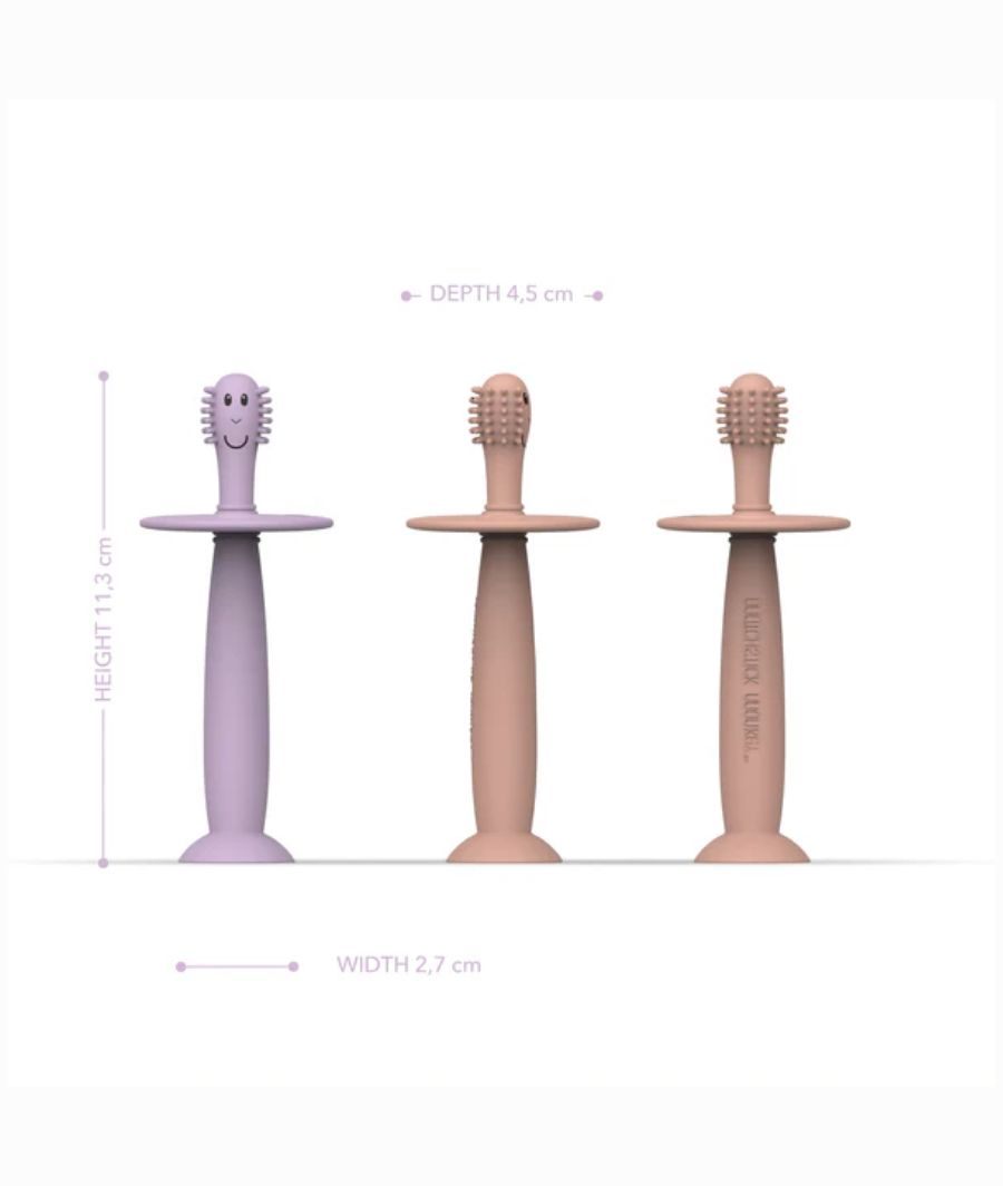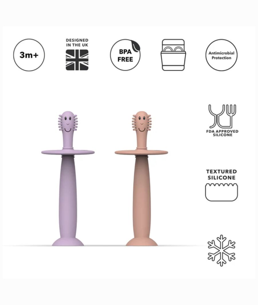 · Soft and flexible silicone bristles – gentle on gums and new teeth