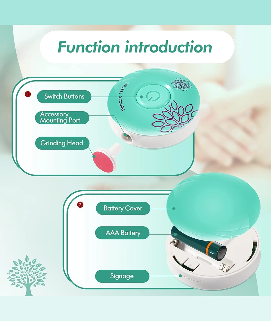 - 【Multiple Functions】Electric nail file for babies with 6 file heads with different grinding levels and a variety of options that suit adults and babies of different ages. For manicure the nail edges of babies or for polishing the nails of adults.