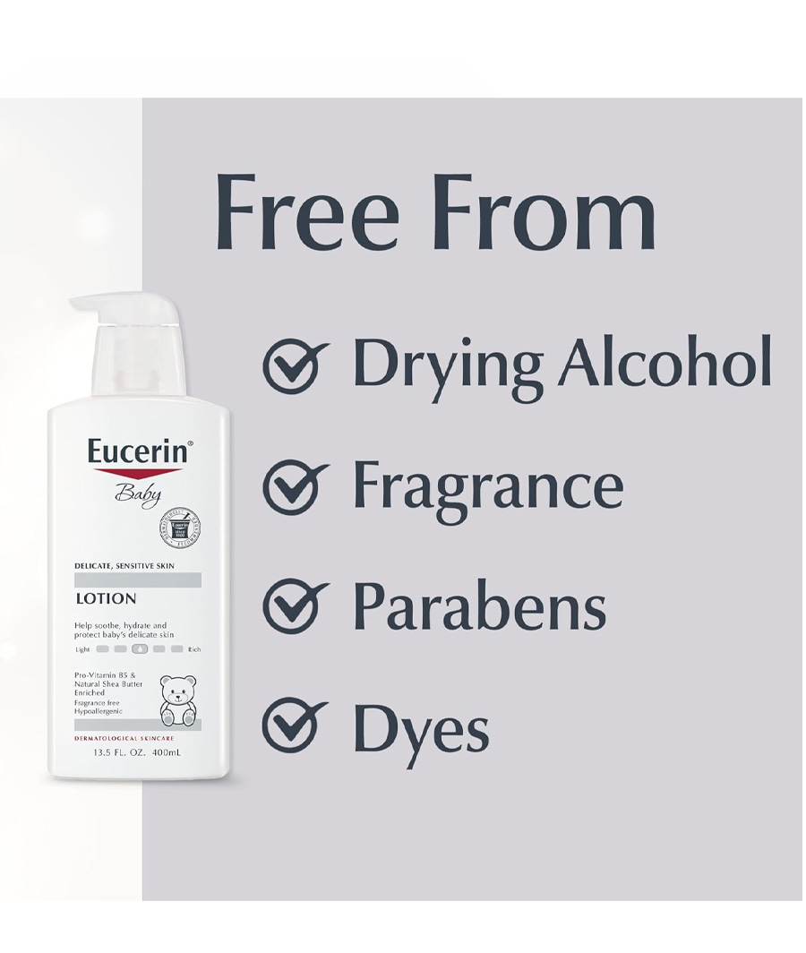 Skin-Friendly Ingredients — avoids dyes, strong perfumes, sulfates, and other harsh chemicals (in line with Eucerin baby product standards).