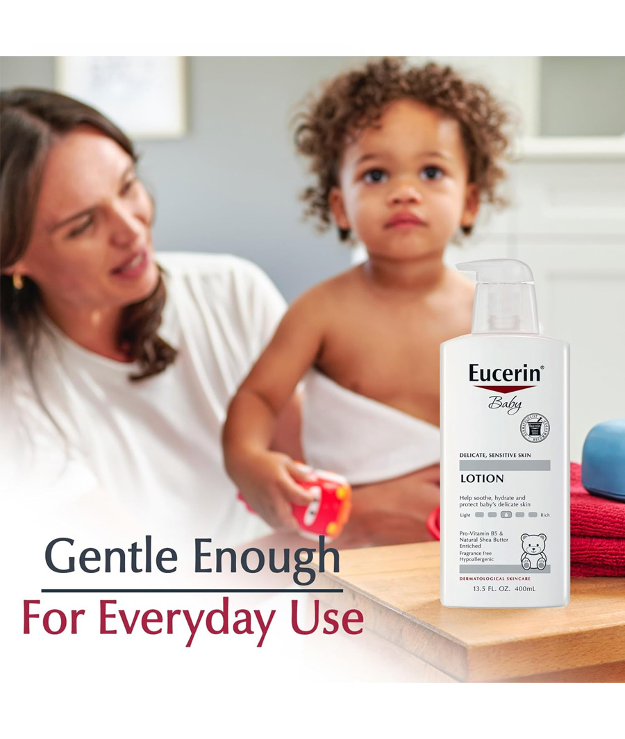 Delicate baby skin deserves care that protects without irritation. Eucerin Baby Unscented Body Lotion is crafted to deliver light, effective hydration for babies and toddlers, while being safe for sensitive skin. Its gentle formula helps maintain skin moisture without harsh additives or fragrances.