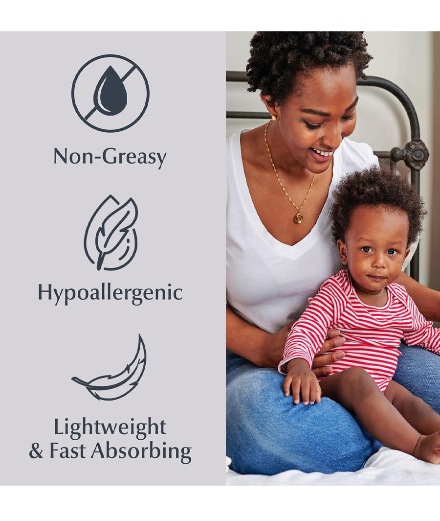 Many baby lotions use fragrances or thick “cream” formulas that can feel heavy or interfere with delicate skin. This one stands apart because: