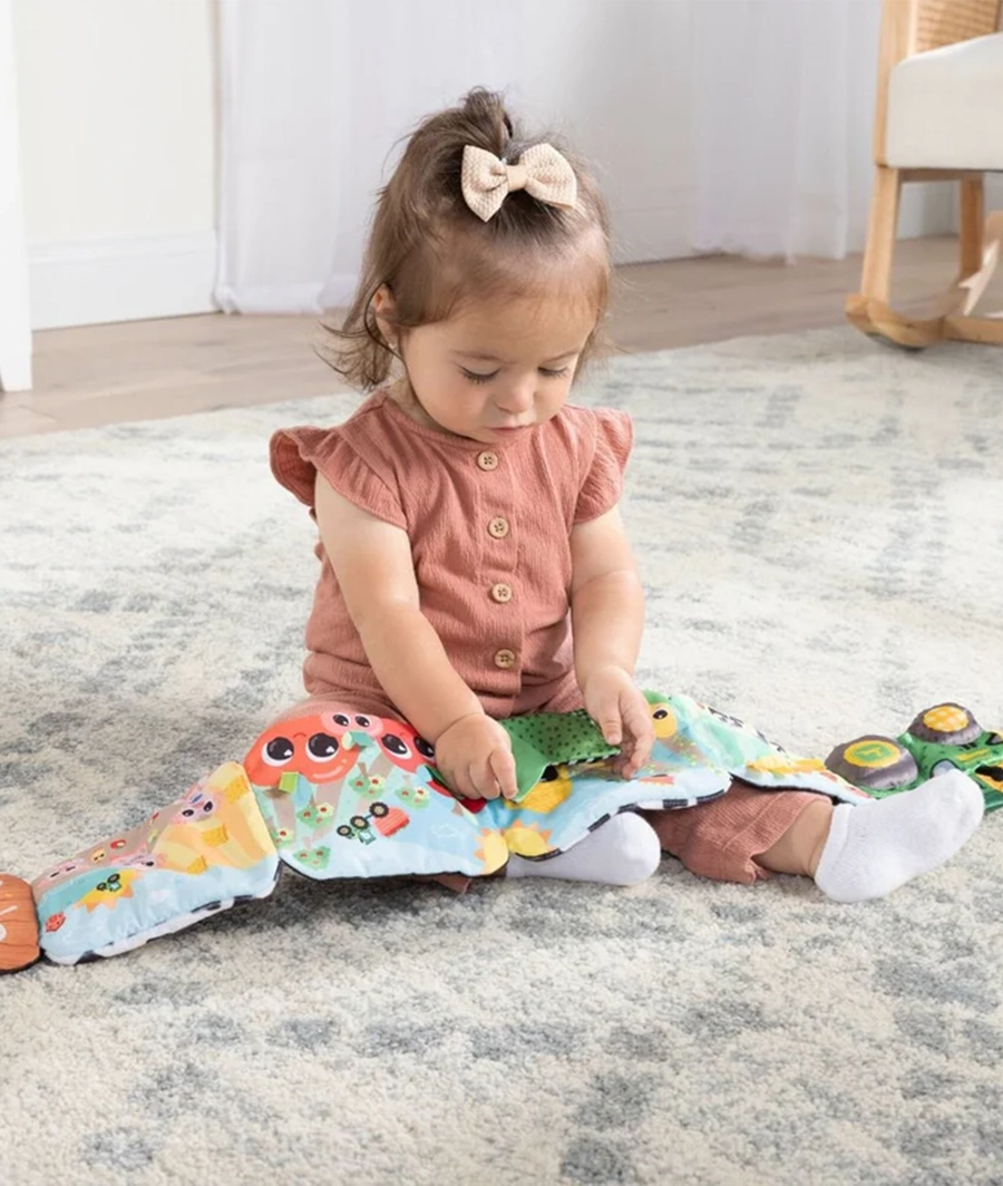 Bright colours and contrasting patterns along with entertaining sounds from the crinkle corn husks stimulate baby’s attention.