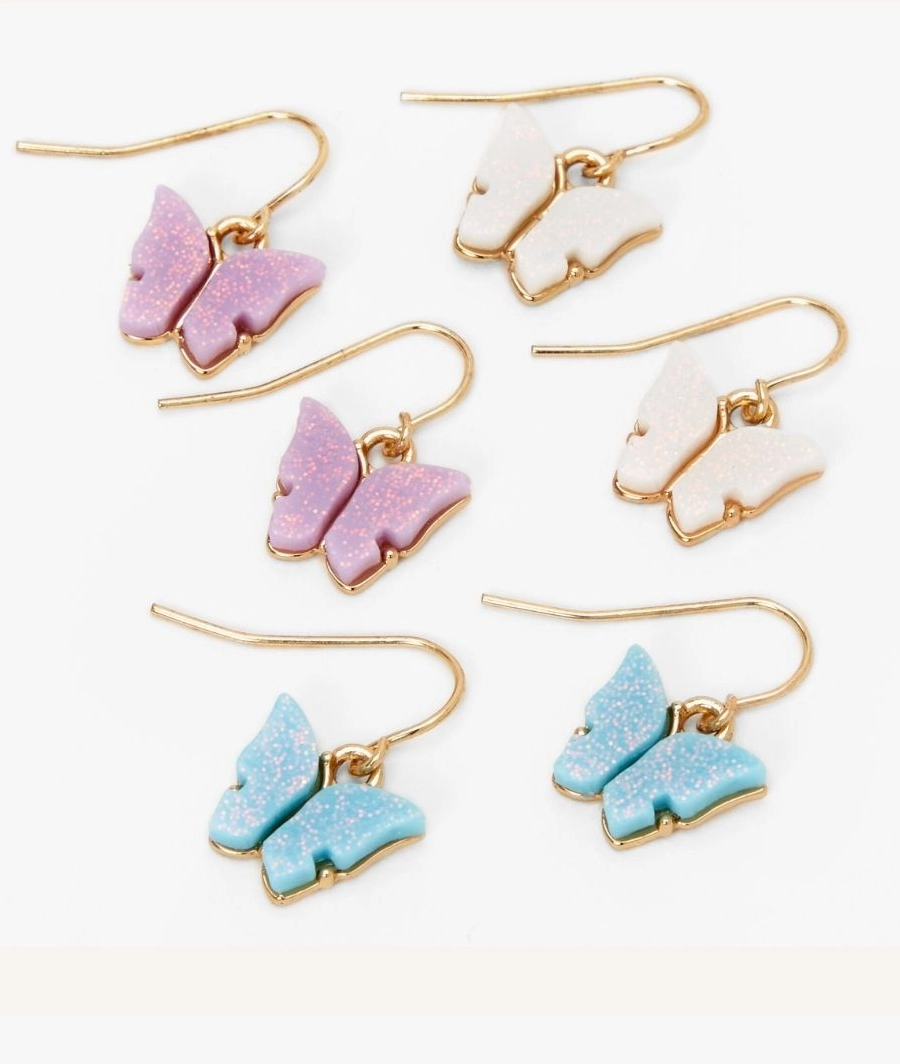 Gold Butterfly Drop Earrings – 3 Pack 🦋✨