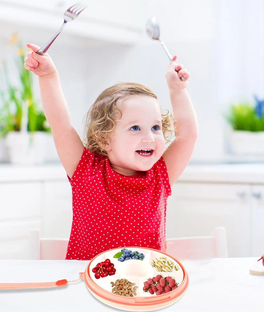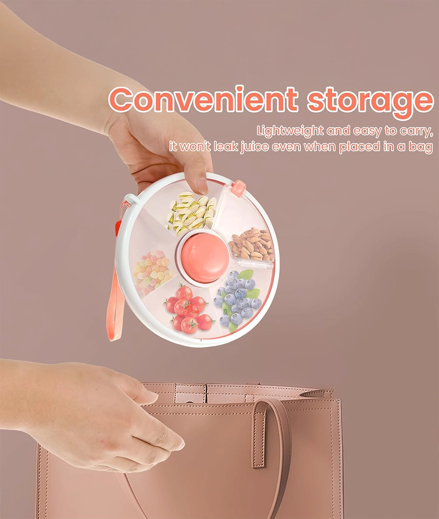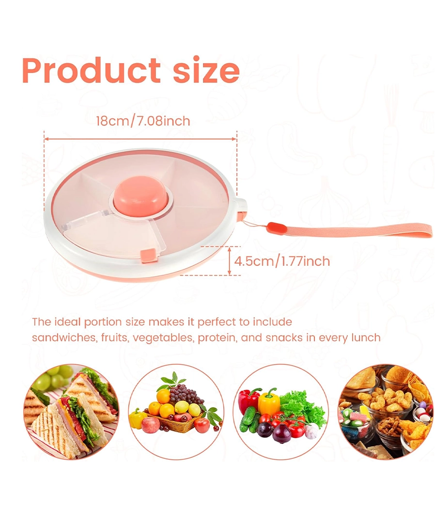 - [Travel Snack Spinner] Measuring 18cm in diameter and 4.5cm in height, this divided snack box has a portable and convenient size and light weight, making it the optimal option for travel. Use it to carry various solid foods on trips to reduce mess