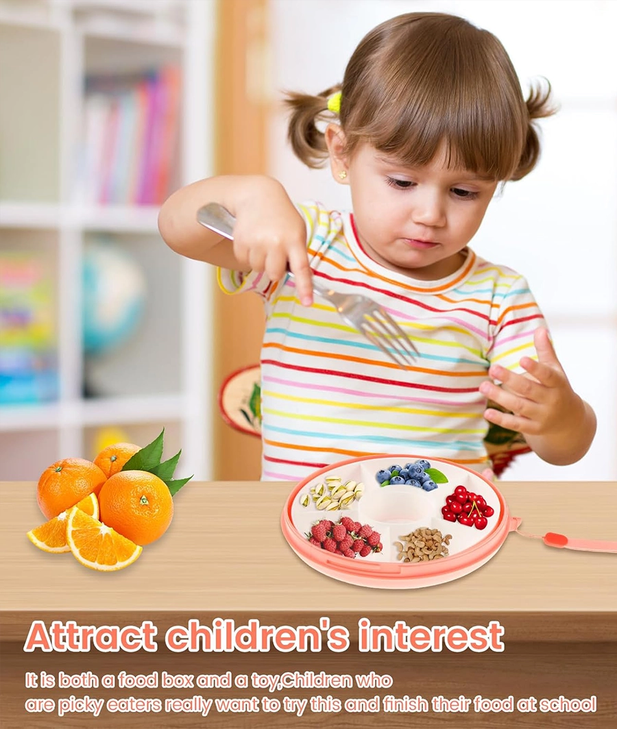 - [5 Compartments] Featuring 5 compartments and an interactive button, the kids snack container makes snacking a breeze. You can pack 5 different foods at once, meeting different needs and preference. In addition, its lightweight and user friendly design add it practicality and convenience