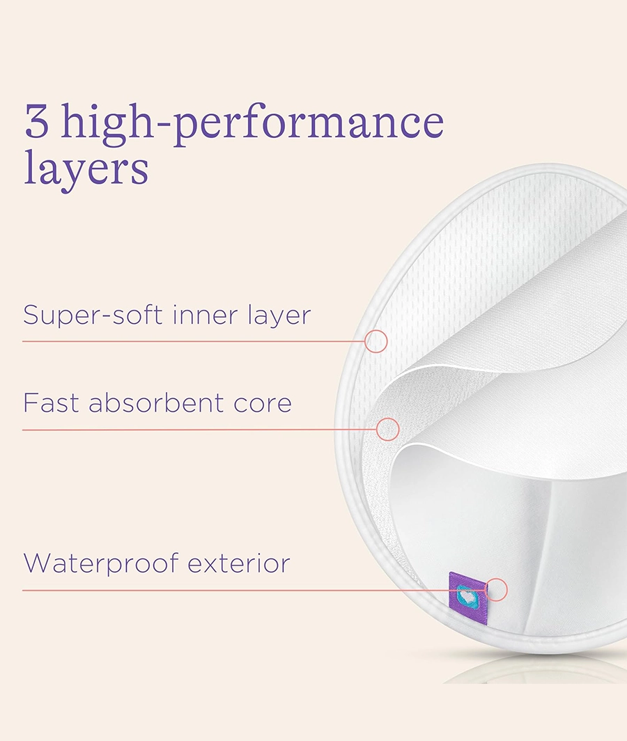 - Highly absorbent Breast Pads to keep you confident and dry during late pregnancy or while breastfeeding.