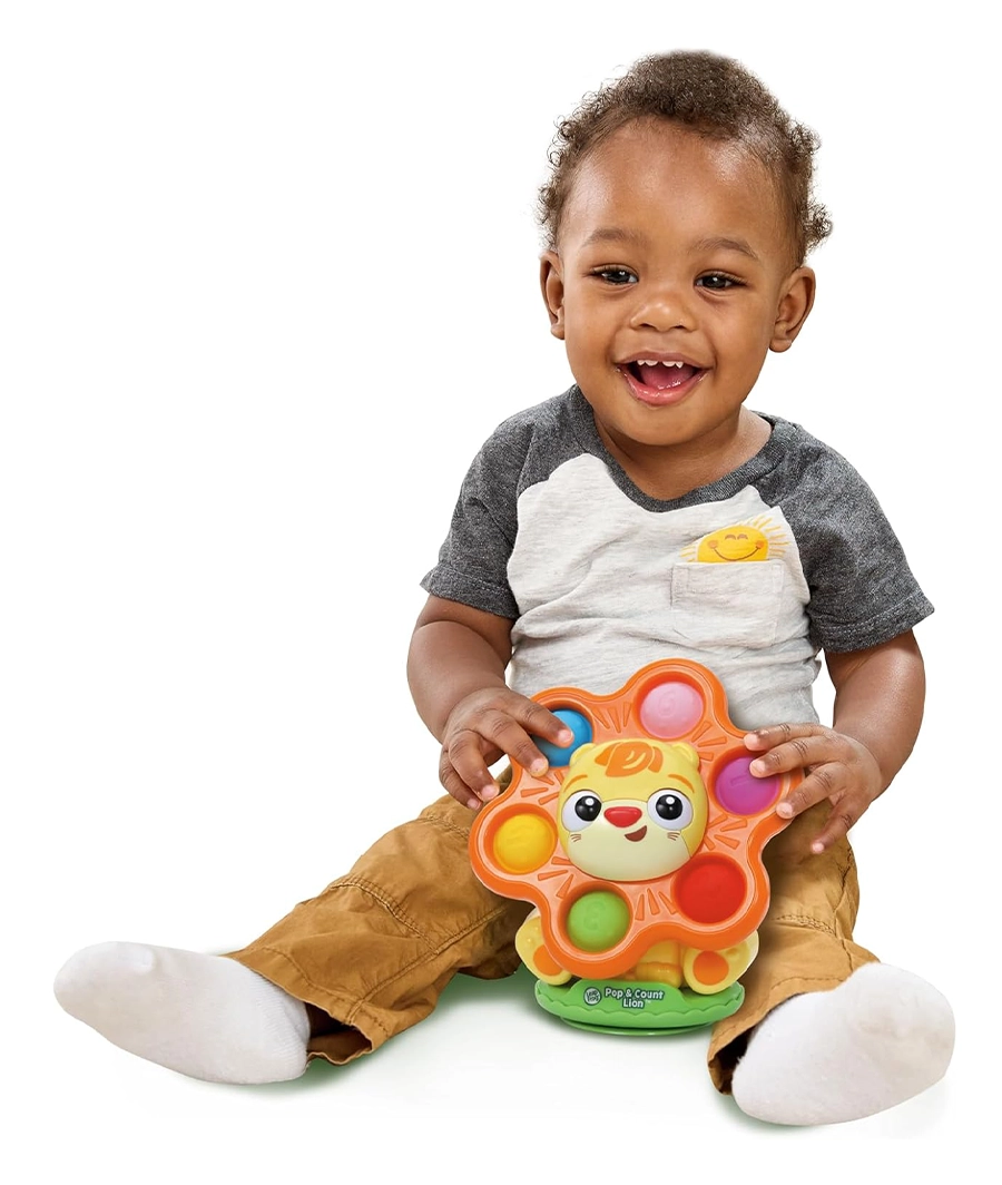 • FINE MOTOR SKILL DEVELOPMENT: Encourage motor skills with squishy buttons and a spinning lion mane.