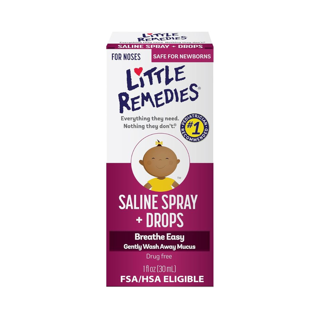 - Little Remedies Sterile Saline Nasal Spray and Drops temporarily clears stuffy, dry, or crusty noses and keep baby’s nose clear and moisturized