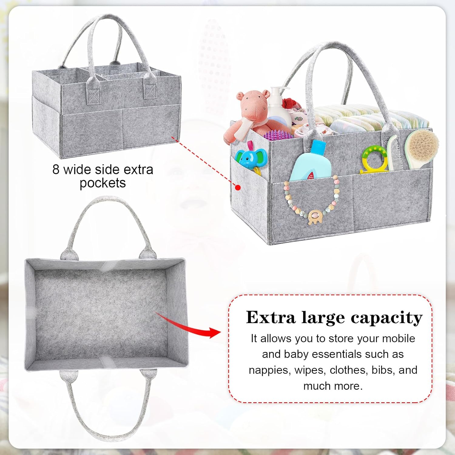 • Customisable compartments: Removable dividers let you create 2–3 internal sections to fit nappies, creams, toys, and more