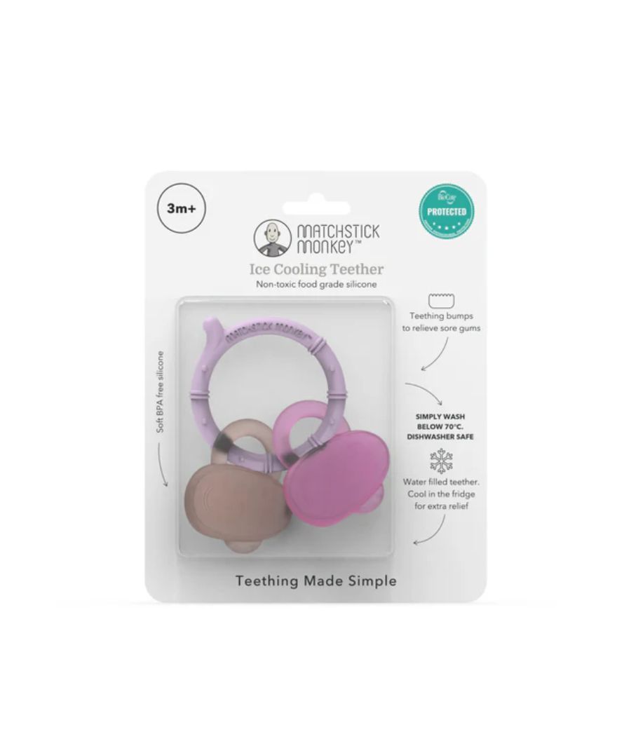 The Matchstick Monkey Ice Cooling Teether Dusty Pink is designed to provide fast, soothing relief from teething discomfort. Featuring water-filled monkey faces for an extra cooling effect and soft textured bumps to gently massage sore gums, it’s perfect for calming little ones. Simply chill in the fridge for enhanced soothing comfort.