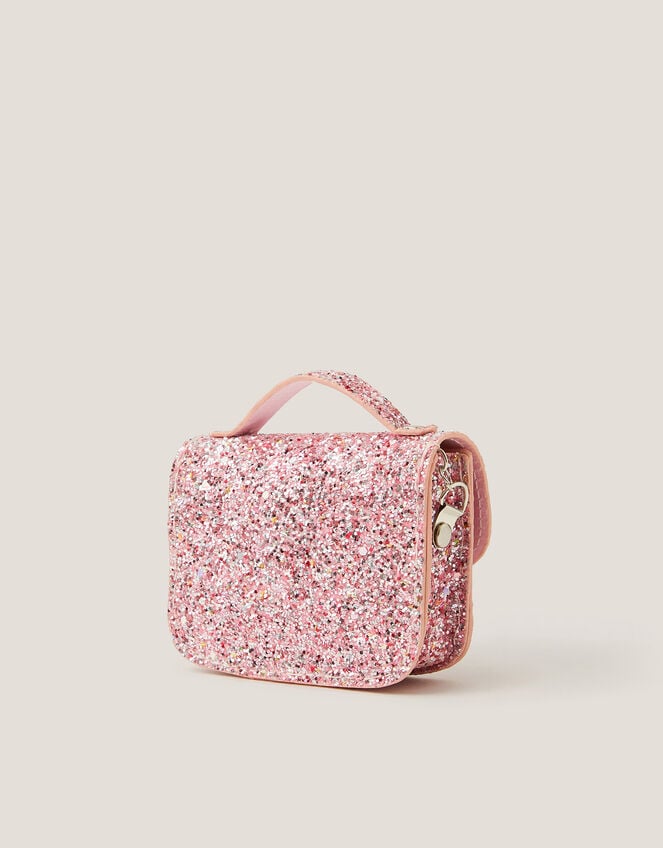 Time to shine! Designed in a satchel shape and sprinkled with pink glitter, this bag is a sparkly storer for all their shopping essentials (think lip gloss and pocket money). Finished with a push-lock fastening and long chain strap to style across the body.
