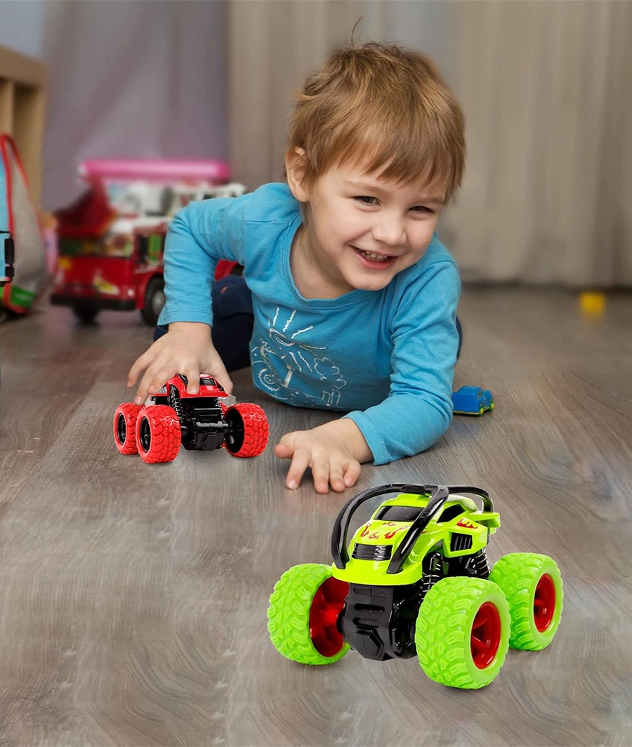 - 【 Perfect Gift for Kids 】360 degree rotating off-road vehicles can make your kids enjoy the funny games time, suitable for kids to play indoors and outdoors. With these monster car toys, your kids are able to build a racing game to gain more fun in the playing time. Inertia car toy is an ideal Birthday, Halloween, Christmas, New Year, Thanksgiving Day, Easter and other festivals toys gifts for 2 3 4 5 6 years old boys girls toddlers kidsweight 115 gm