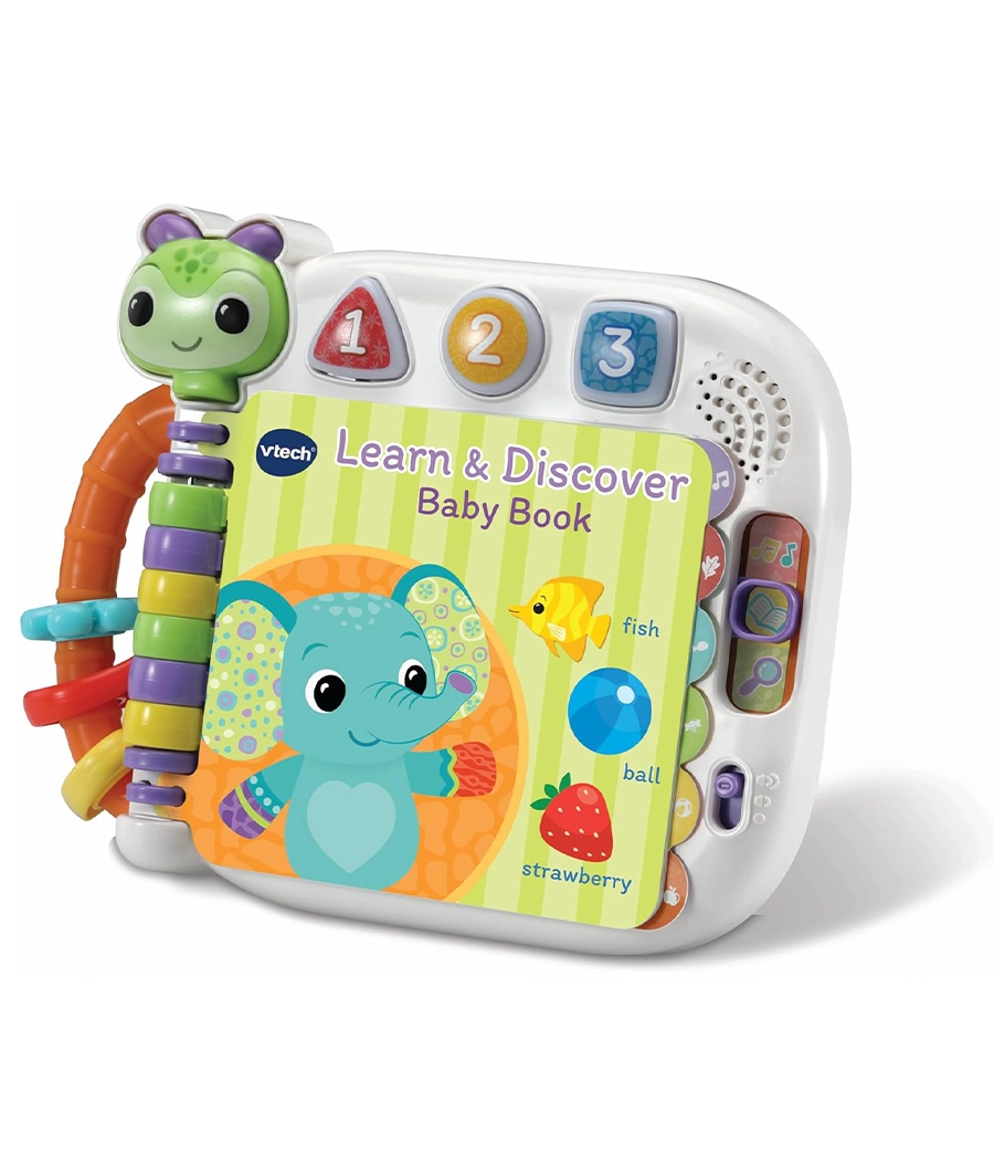 - FUN LEARNING: Join a fun learning journey from the sea to the savannah with the Learn and Discover Baby Book by Vtech, This interactive adventure introduces early reading, exploring animals, colours, shapes, and objects for engaging educational play